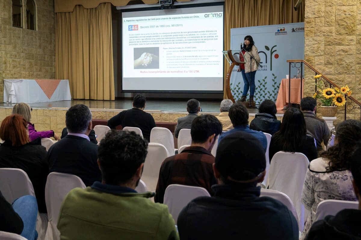A esta ocasión asistió la Dra. Ana Luisa Valencia, Investigadora y Gestora Tecnológica de Aroma Lab®, quien expuso parte de sus investigaciones orientadas a poder reconocer síntomas y enfermedades en viveros. En la charla titulada Requisitos Fitosanitarios en la venta de plantas para prevenir enfermedades fúngicas, se abordaron aspectos relacionados con la normativa del Servicio Agrícola y Ganadero (SAG), la cual rige a los viveros de especies frutales, respecto a la genuinidad y sanidad vegetal. Además, se resaltó la importancia de la prevención, el monitoreo y el control de los patógenos que causan infecciones latentes, con el objetivo de garantizar la sanidad y la productividad de especies frutales desde el vivero.