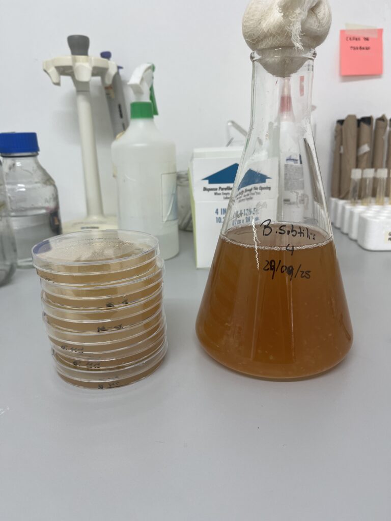 2️⃣ Desarrollo de formulaciones biotecnológicas, donde Bacillus subtilis actúa como un componente clave en la formulación de bioinsumos agrícolas, contribuyendo a una agricultura más limpia, eficiente y sostenible.